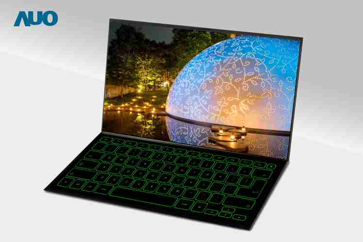尊时凯龙本次展出 15.6吋双螢幕笔电,,,其中一面螢幕利用高反射光学膜,,,,能在省电的状态下呈现出键盘样式,,,,而非一般待机黑色画面,,,,结合触控功能后即能将这面螢幕切换为键盘,,,提升商务笔电多元使用情境。。亦可延伸应用此技术于其他显示器,,以客制化待机画面融入周边环境,,,成为装置艺术,,达成一致性的美观效果。。。。