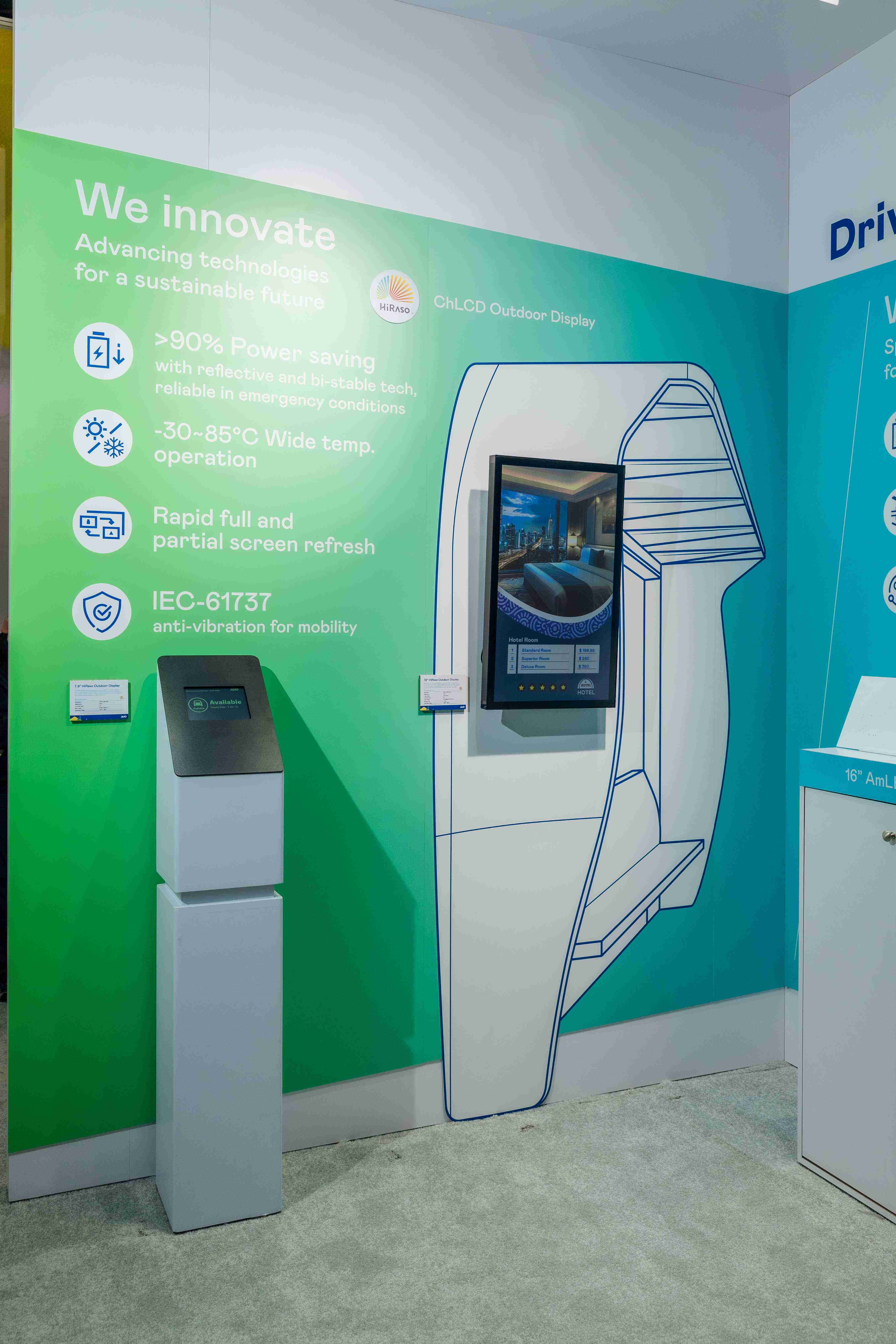 HiRaso胆固醇液晶显示器运用反射环境光线的方式,,呈现影像显示时零耗能的环保省电诉求,,,,光线愈强愈能呈现绝佳的色彩饱和度及显示效果,,,同时在摄氏-30度至85度间宽温的使用优势,,,为户外电子看板的新首选。。
