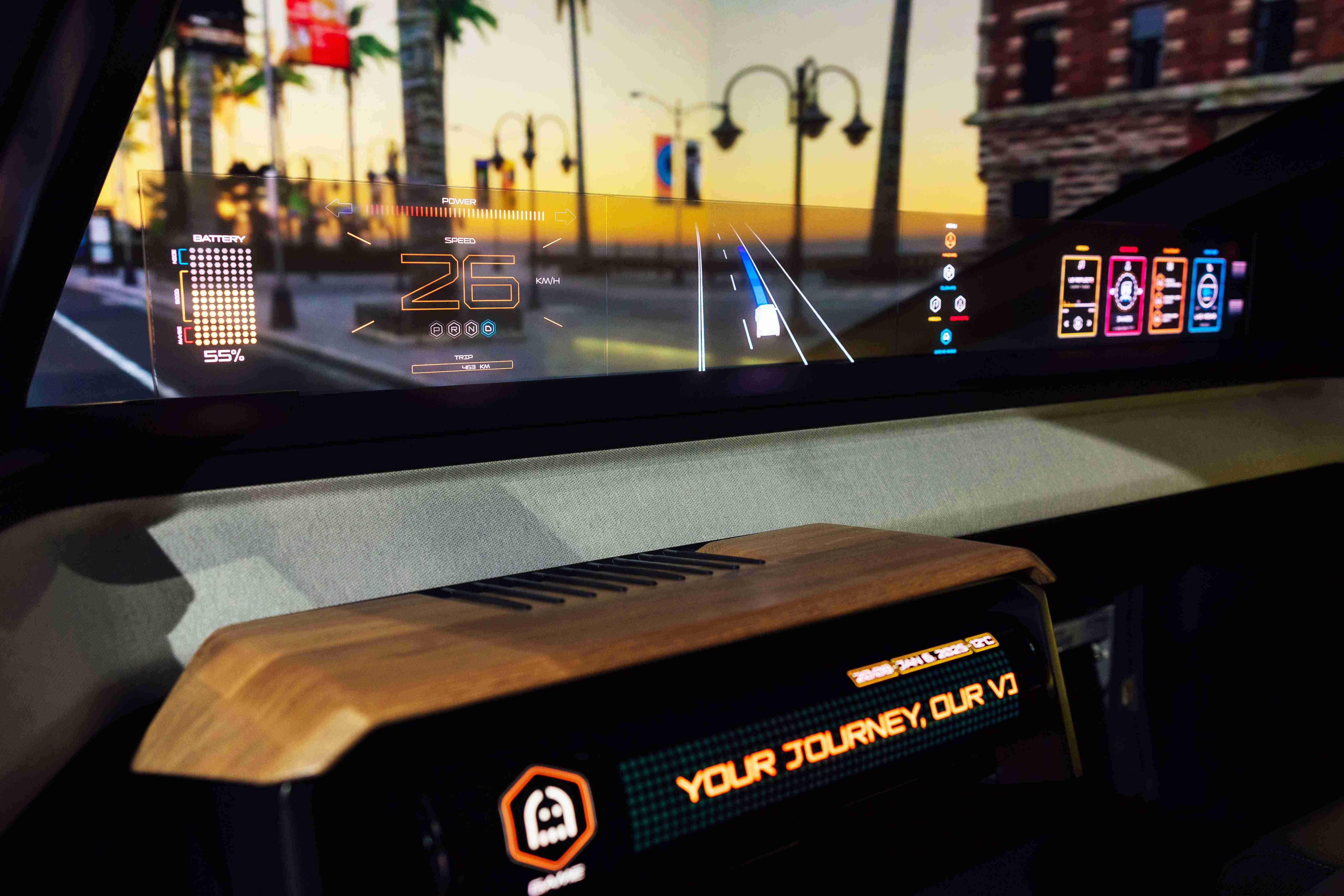 车用运算方案驱动无界透明显示介面(Horizon Image Glass),,整合仪表板、、、中控及副驾显示功能为一体式全景呈现,,,不仅提供清晰的外部视野,,,亦能即时显示车辆状态、、、、导航及路况资讯,,,,并赋予个性化设定与驾驶安全警示等加值化服务。。