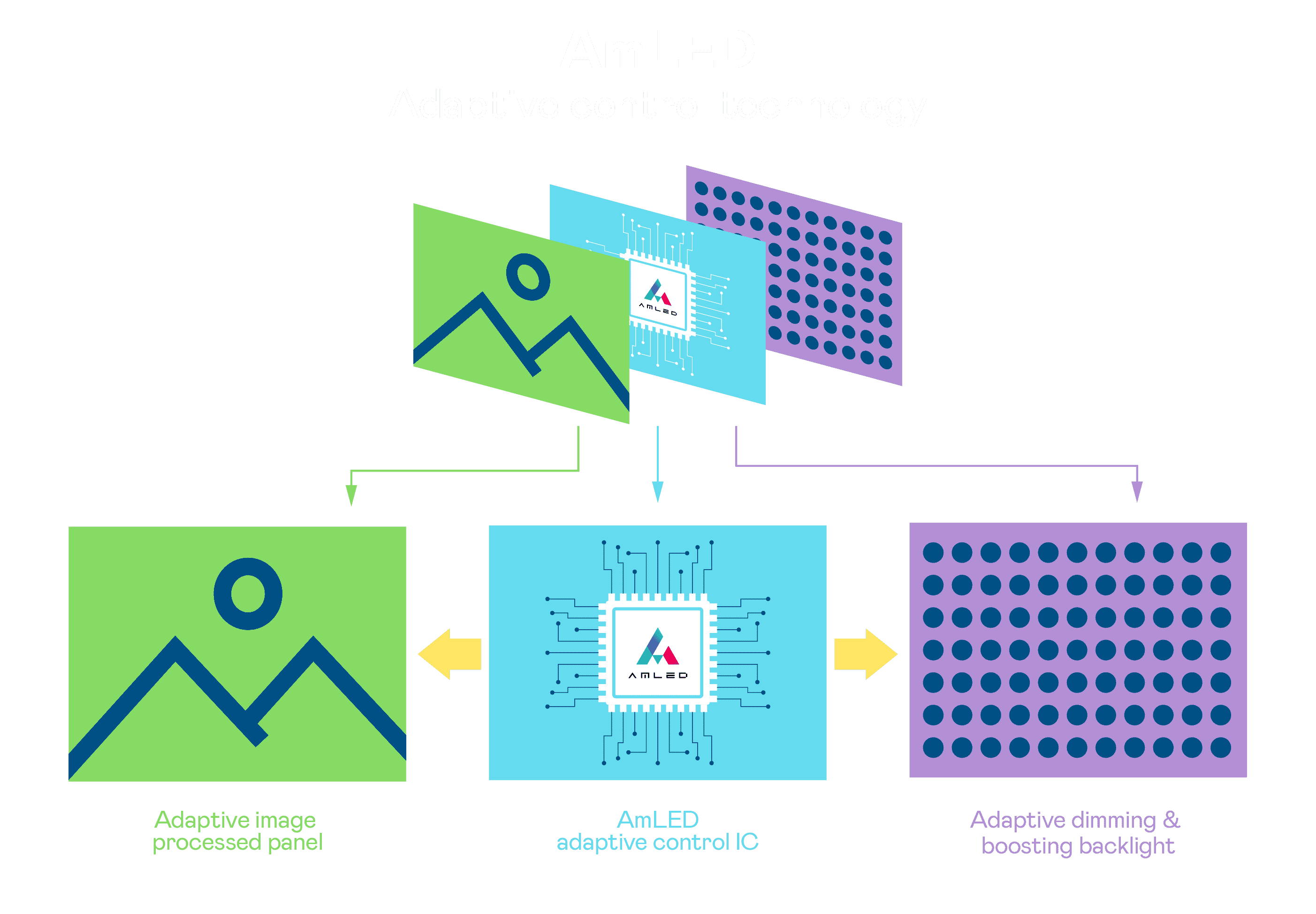 AmLED 具备更省电与低蓝光特性。。。。与一般的 LED 背光显示技术相比,,,,由于 AmLED 常时处于局部调光状态,,其功耗仅有前者的 50% 左右,,,,同时 AmLED 还具备低蓝光特性,,满足长时间使用的护眼需求。。