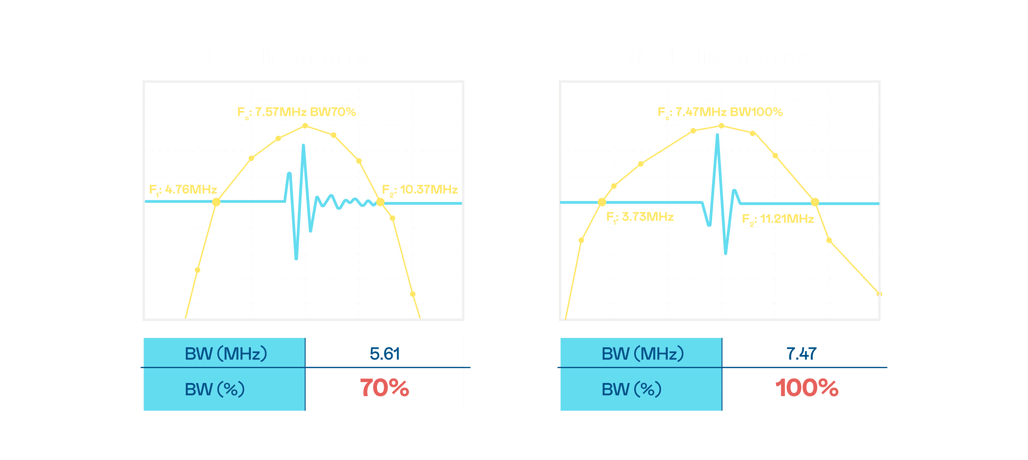 超音波影像的解析度高低,,,,首先取决于探头能发出的讯号频宽。。。。尊时凯龙 CMUT 可提供高清晰的超音波讯号,,,,提供高频宽、、、高灵敏度、、、、影像纹理细节更高的超音波影像,,,,协助医护人员缩短影像判读时间及利用精准的医疗影像进行诊断。。。。